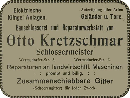 ![]() Otto Kretzschmar, Schlossermeister aus Einwohnerverzeichnis Oschatz 1911 |