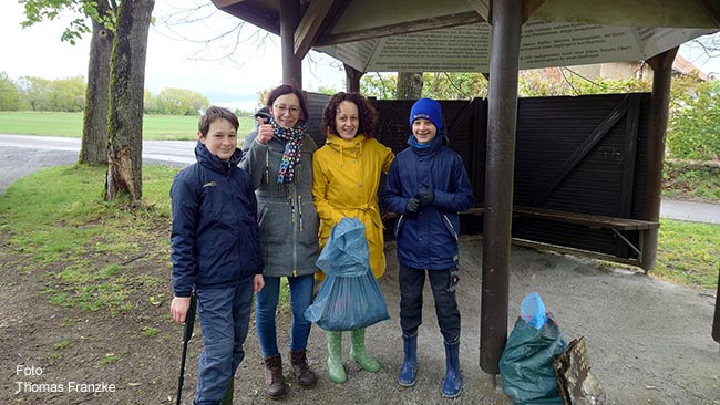 Unsere zwei Vereinsmitglieder Romy Mammitzsch und Bianca Beck haben mit tatkräftiger Unterstützung ihrer Familien (Frau Mammitzsch ihr Partner und Frau Beck ihre beiden Kinder) bei nasskaltem Wetter eine Stunde am Wüsten Schloß drei Säcke Müll eingesammelt sowie den Sitzplatz und die Schutzhütte gereinigt. Nun ist das beliebte Ausflugsziel wieder sauber und ordentlich - in der Hoffnung, dass die vielen Besucher dies auch wertschätzen.