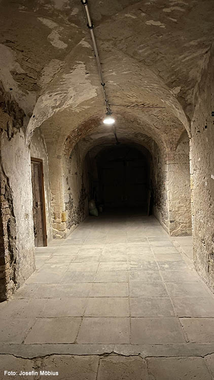 Der Keller ist der einzige noch original erhaltene Teil des Gebäudes des ursprünglichen Schlosses.