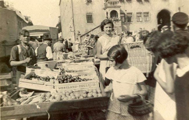 die ihre Waren gerade mit dem Fahrrad zum Markttag