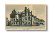 Das Mügelner Rathaus und Umgebung sowie Annoncen aus 1911 und 1931. |
