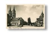 &Co. aus Leipzig ist eine der wenigen Ansichten von St. Aegidien und dem Rathaus ohne den Marktbrunnen. Das Foto auf der nächsten Karte von