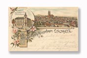 | 03.05.2014 | Heute kommt Oschatzer Allerlei auf den Tisch, bzw. auf den Monitor. Zunächst gibt es einige Mehrbildkarten mit teils winzigen Abbildungen und eine Panoramaansicht von Oschatz.
