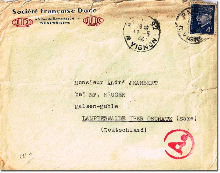 | Adressat: französischer Zwangsarbeiter in Lampertswalde Sammlung: Eckhard Thiem † |
