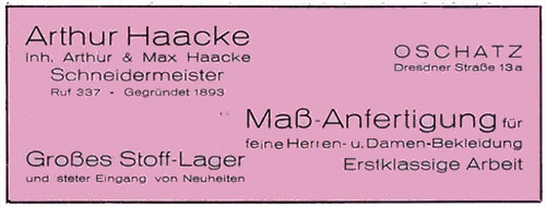 Arthur Haacke, Inhaber Arthur und Max Haacke, Schneidermeister