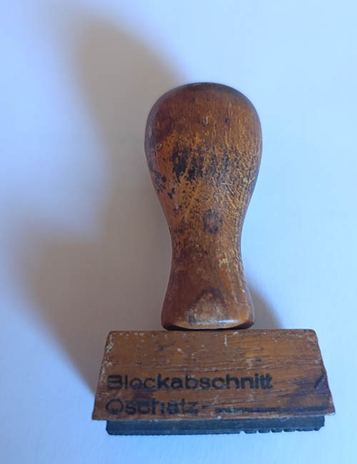 STEMPEL MIT TEXT „BLOCKABSCHNITT OSCHATZ –________________“ Dieser Stempel fand im Bahnhof VerwendungSammlung und Foto: Gerald Polster