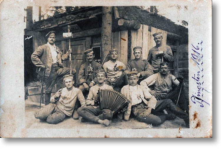 Fotograf: Ludwig Steikowsky, Chemnitz gelaufen: 1916 Leihgabe von Jürgen Jende, KleinforstDiese Fotokarte von einem Unterstand im Schützengraben schickte Oskar May von der 2; Eskadron des 1. Ulanen-Regiments No. 17 an seine Elternonline gestellt: 03.01.2026