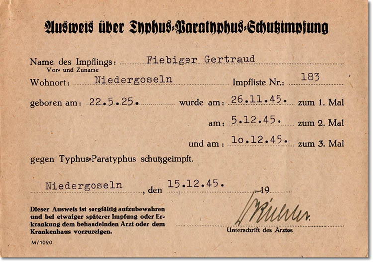 AUSWEIS ÜBER TYPHUS-PARATYPHUS-SCHUTZIMPFUNG