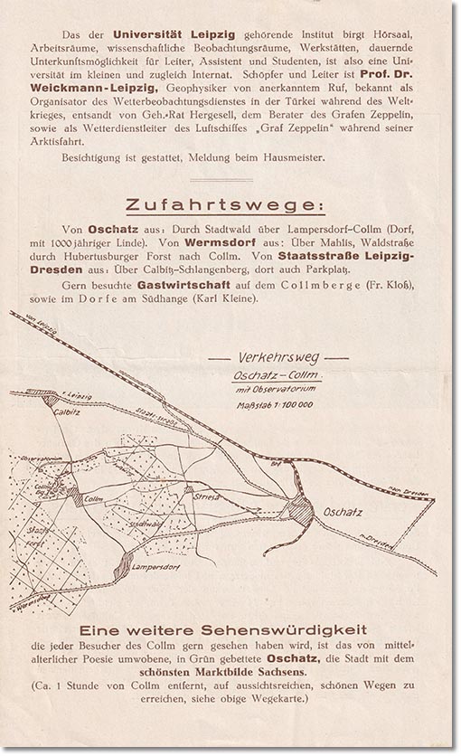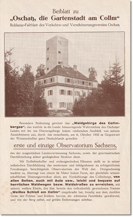 Reklame-Faltblatt des Verkehrs- und Verschönerungsvereins Oschatz Beiblatt zu „Oschatz, die Gartenstadt am Collm“ Sammlung: Klaus Thiele |