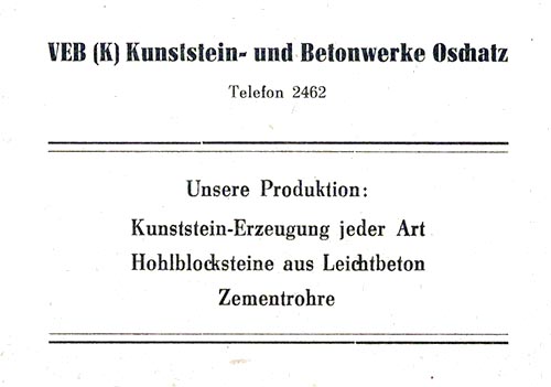 VEB (K) Kunststein- und Betonwerke Oschatz aus Broschüre „Schul- und Heimatfest Oschatz 1956“
