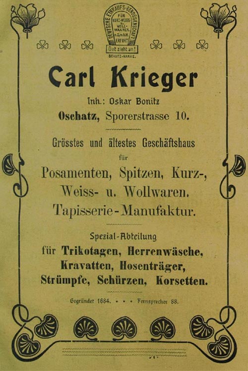 Modewarenhaus Carl Krieger, Inhaber Oskar Bonitz