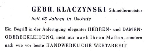Gebr. Klaczynski, Schneidermeister