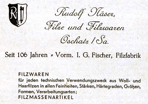 Rudolf Näser, Fikze und Filzwaren aus Broschüre „Schul- und Heimatfest Oschatz 1956“