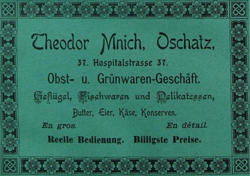 Grünwarengeschäft aus Einwohnerverzeichnis Oschatz 1904 Delikatessgeschäft Otto Beulich entdeckt von Tilo Gerber in „Oschatzer Tageblatt“ August 1911