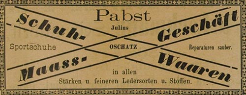 Jukius Pabst Schuhwaaren, Maßgeschäft aus Einwohnerverzeichnis Oschatz 1895