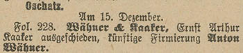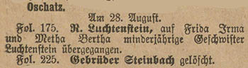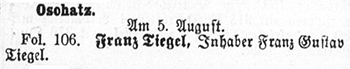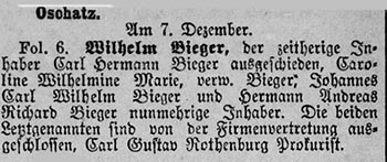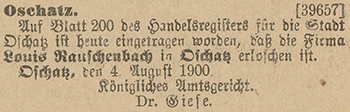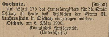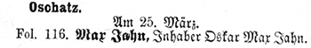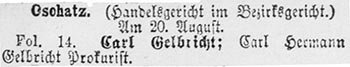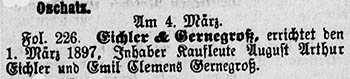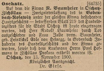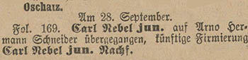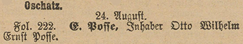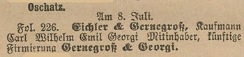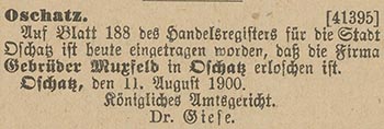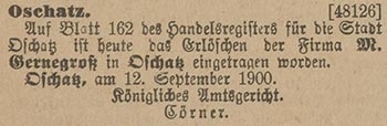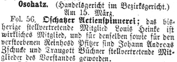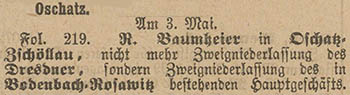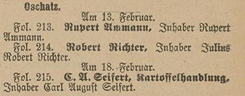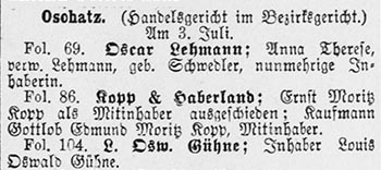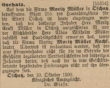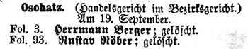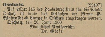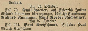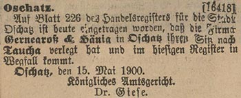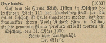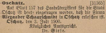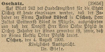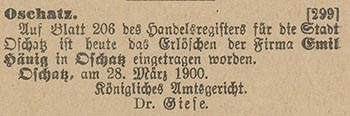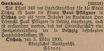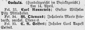 dem Handelsregister von Oschatz zunächst aus den Jahren 1876 bis 1900 zusammengetragen, die im „Deutscher Reichsanzeiger und Preußischer Staatsanzeiger“ erschienen und auf