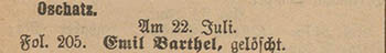 durch Tod ausgeschieden und Frau Julie verw, Baumheier, geb,