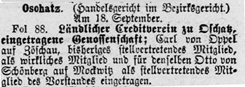 88. Ländlicher Creditverein zu Oschatz, eingetragene