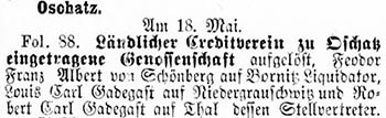 88. Ländlicher Creditverein zu Oschatz eG Carl von Oppel auf Zöschau,