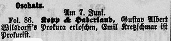 Inhaberin Fol. 86. Kopp & Haberland: Ernst Moritz Kopp