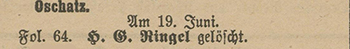gelöscht Fol. 37 Georg Wagner Inhaber Ernst Moritz Georg