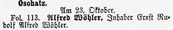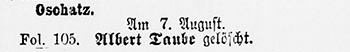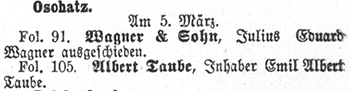 Wagner ausgeschieden. Fol. 105. Albert Taube Inhaber Emil Albert Taube. |