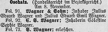 91. Wagner & Sohn Inhaber Julius Eduard Wagner und Julius Eduard Emil Wagner. Fol.92.