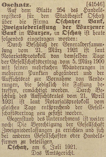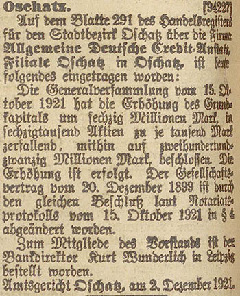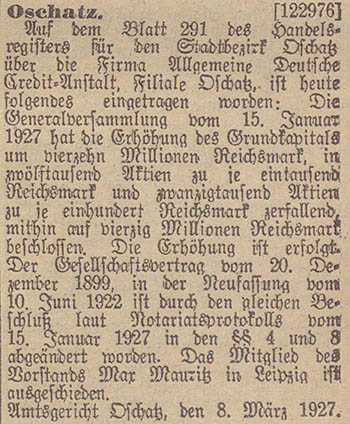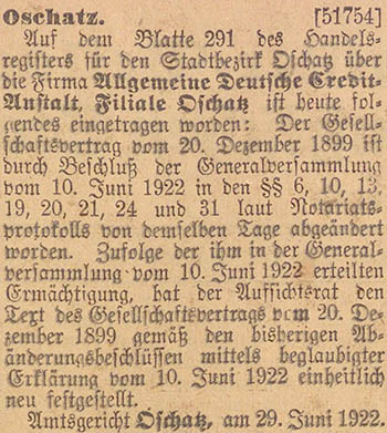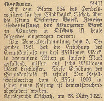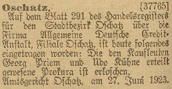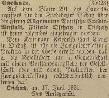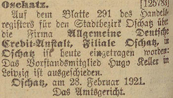Deutsche Credit-Anstalt, Filiale Oschatz Das