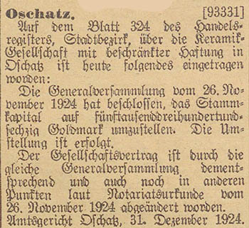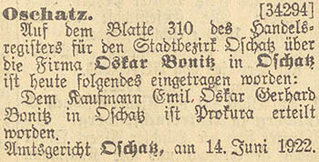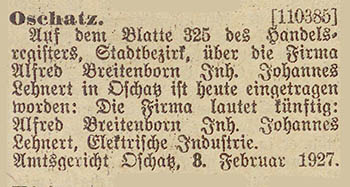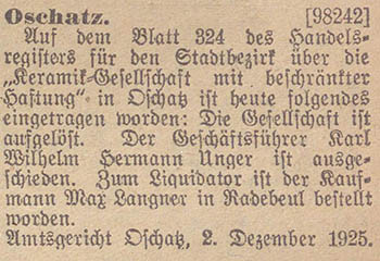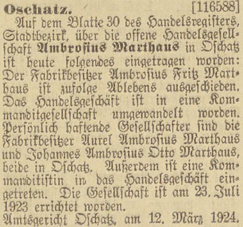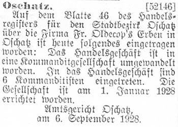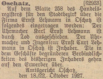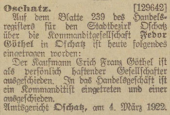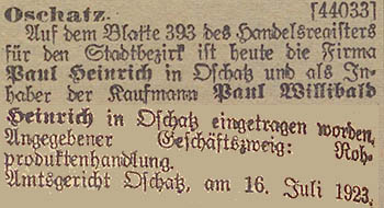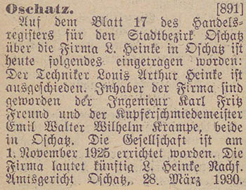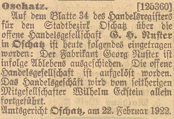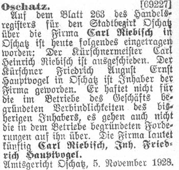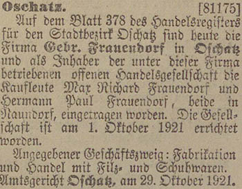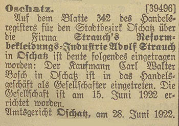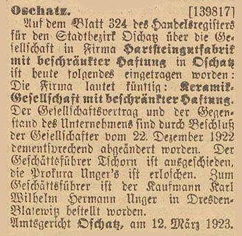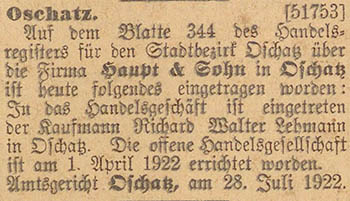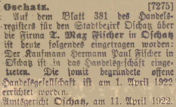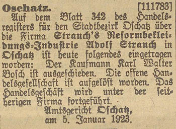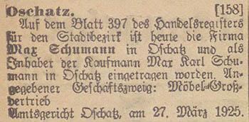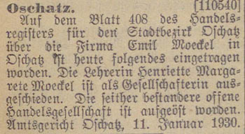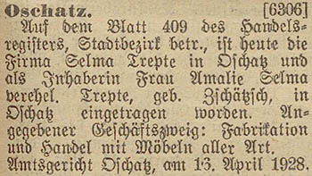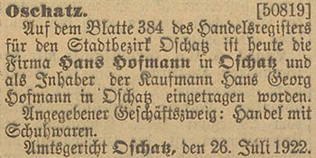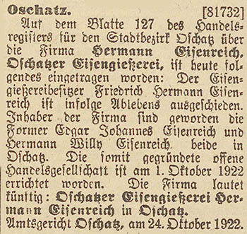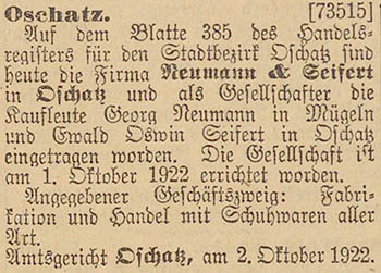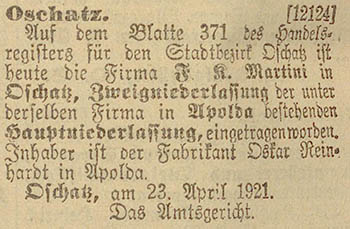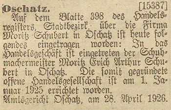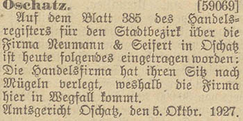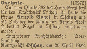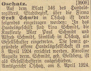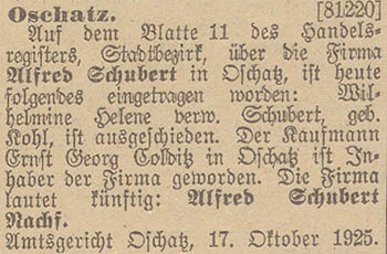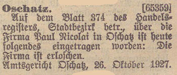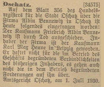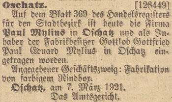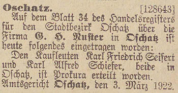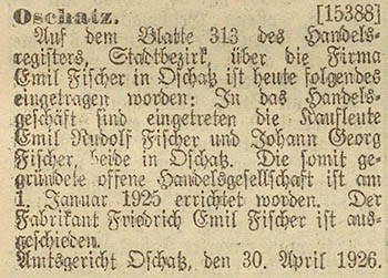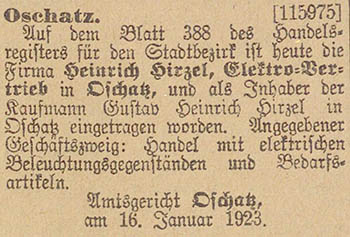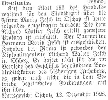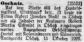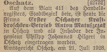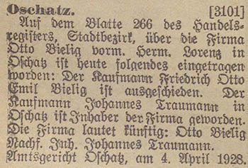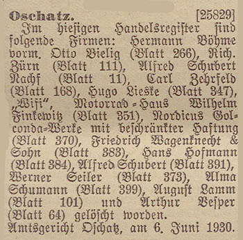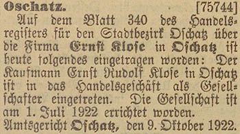 Oschatz betriebene Fabrikations- und Handelsgeschäft mit