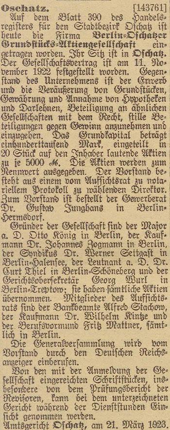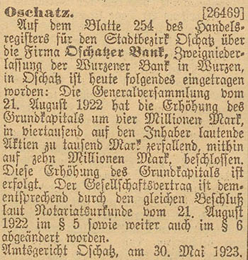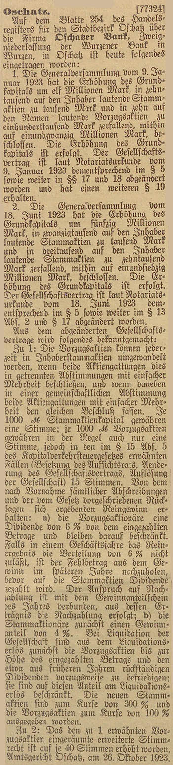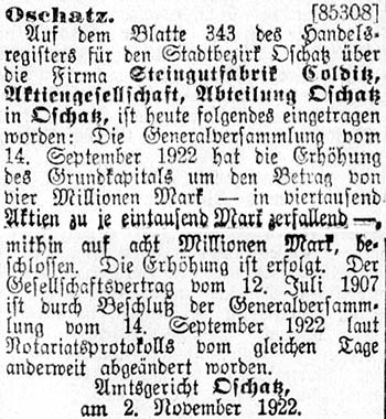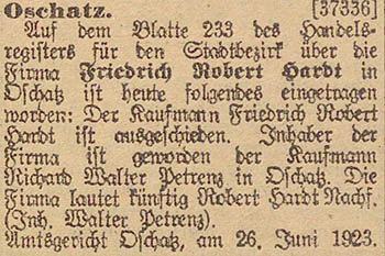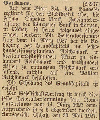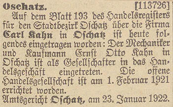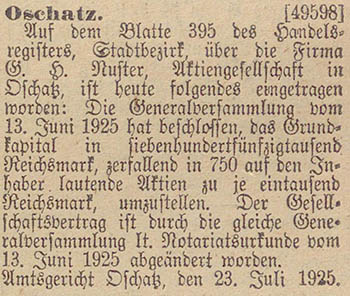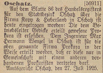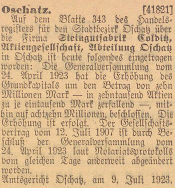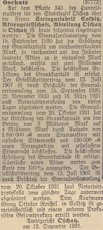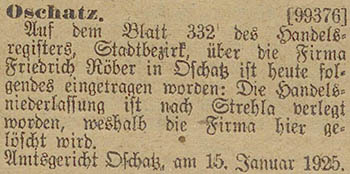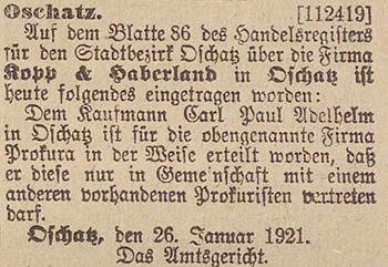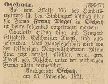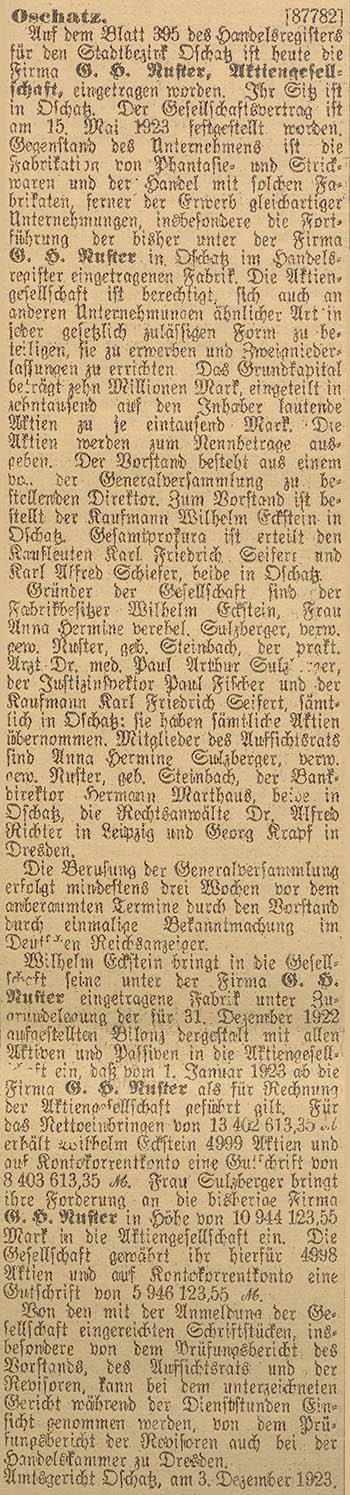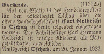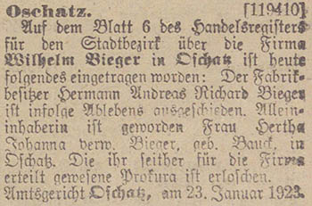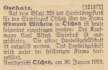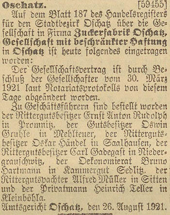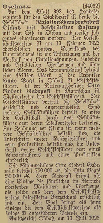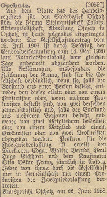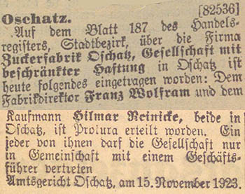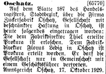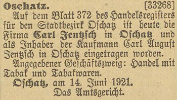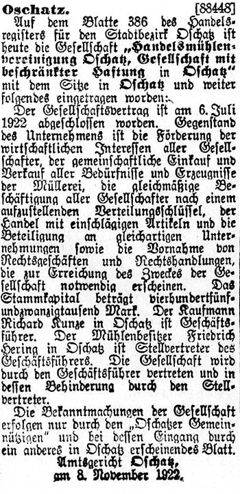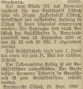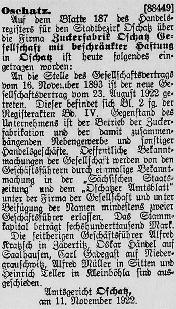 An dieser Stelle wurden Eintragungen im Handelsregister von Oschatz
