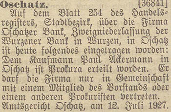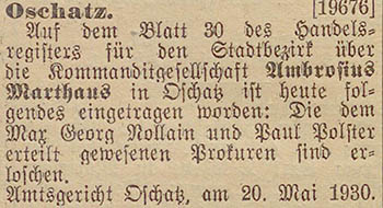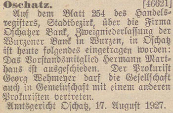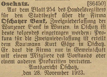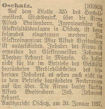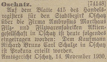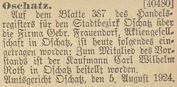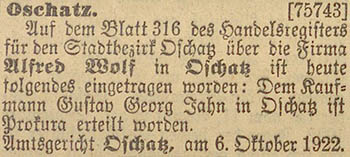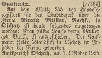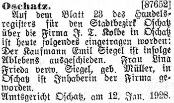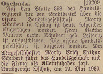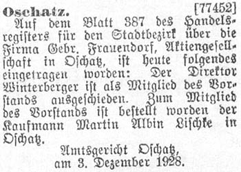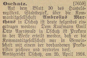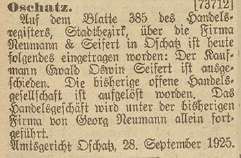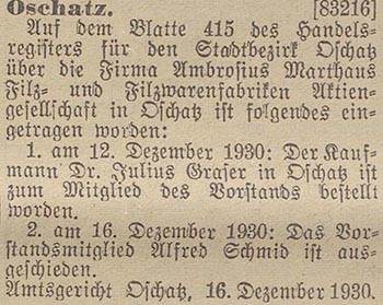 1930: Der Kaufmann Dr. Julius Graser in Oschatz ist zum