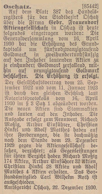 Richard Moßig 174 Aktien, Arthur Einführer 32 Aktien,