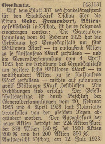 Blatt 387 Gebr. Frauendorf Aktiengesellschaft Die Generalversammlung vom 16, April