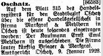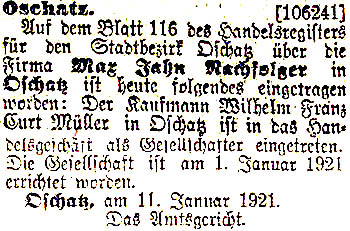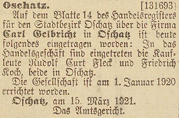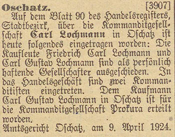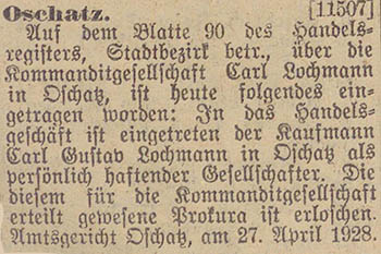 Koch, beide in Oschatz. Die Gesellschaft ist am 1. Januar