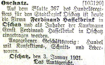 Kaufmann Ernst Ferdinand Hasselbrink Angegebener Geschäftszweig: