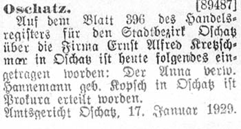 Angestellte Fritz Kramer, beide in Oschatz, und vom