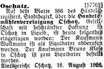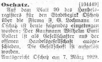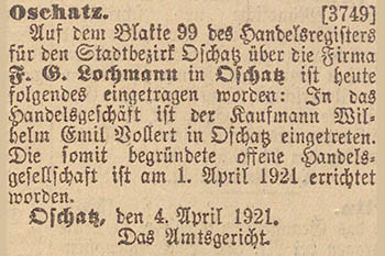 Kaufmann Wilhelm Emil Vollert in Oschatz eingetreten. Die
