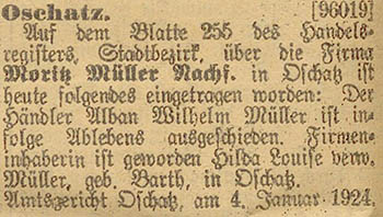 Kaufmann Wilhelm Curt Franz Müller in Oschatz ist in das