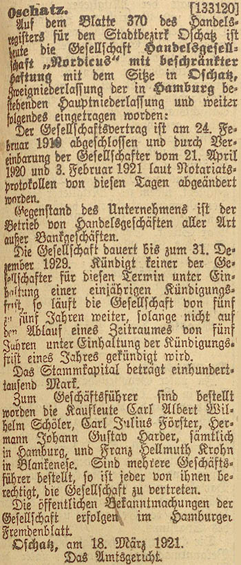 Gesellschafter vom 21. April 1920 und 3. Februar 1921 laut
