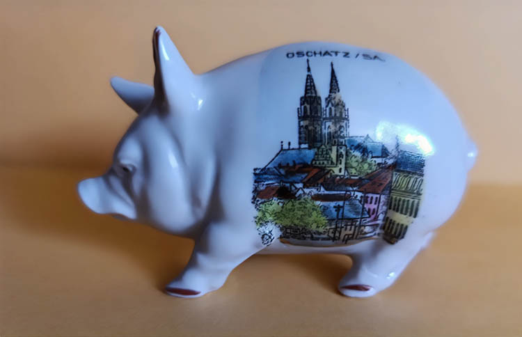 SPARSCHWEIN hergestellt bei der Porzellanmanufaktur Franz Fritz Nachfolger (FFN), Großbreitenbach in Thüringen.Leihgabe von Gerald Polster, Oschatz