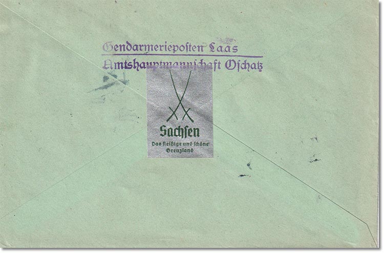 KUVERT Absender: Gendarmerieposten Laas der Amtshauptmannschaft Oschatz Sammlung: Klaus Thiele |