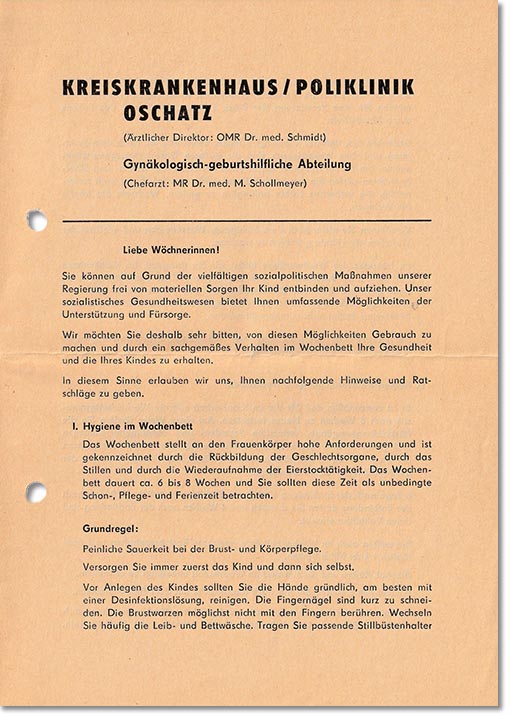 KREISKRANKENHAUS OSCHATZ – MERKBLATT FÜR SCHWANGERE Sammlung: Gerald Polster |