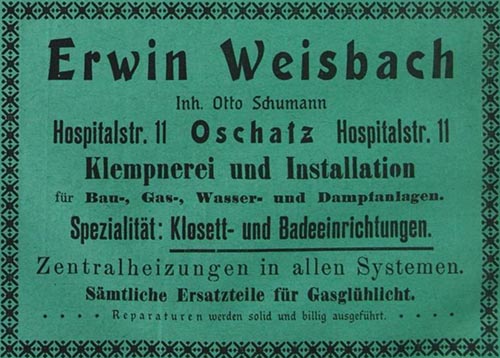 Klempnermeister Otto Schumann aus „Oschatz mit dem Orte Zschöllau sowie die Umgebung in Wort und Bild“, 1913