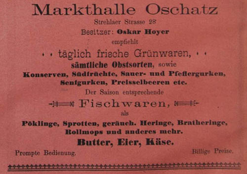 Grünwarengeschäft aus Einwohnerverzeichnis Oschatz 1904 Delikatessgeschäft Otto Beulich entdeckt von Tilo Gerber in „Oschatzer Tageblatt“ August 1911