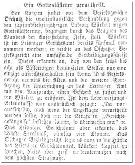 Ein Gotteslästerer verurheilt. Vor Kurzem findet vor dem
