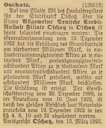 Deutsche Credit-Anstalt, Filiale Oschatz Das