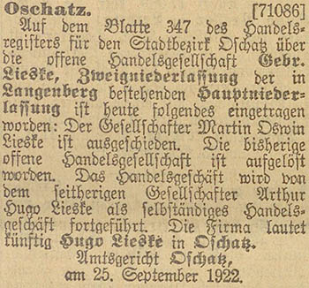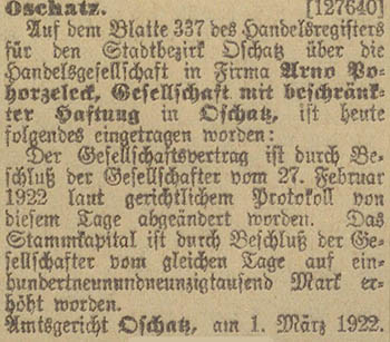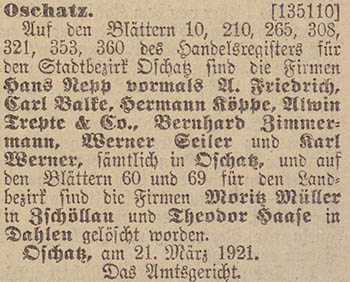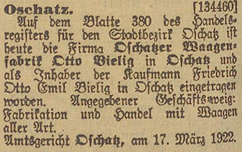 Oschatz betriebene Fabrikations- und Handelsgeschäft mit