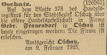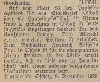 Angestellte Fritz Kramer, beide in Oschatz, und vom