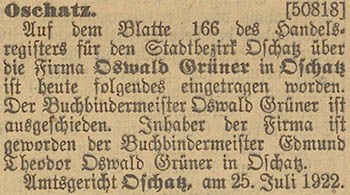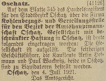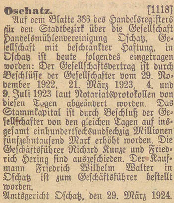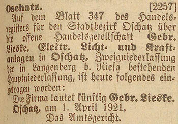 An dieser Stelle wurden Eintragungen im Handelsregister von Oschatz