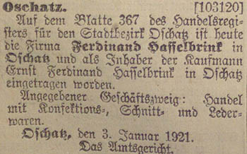 Blatt 367 Ferdinand Hasselbrink Inhaber der